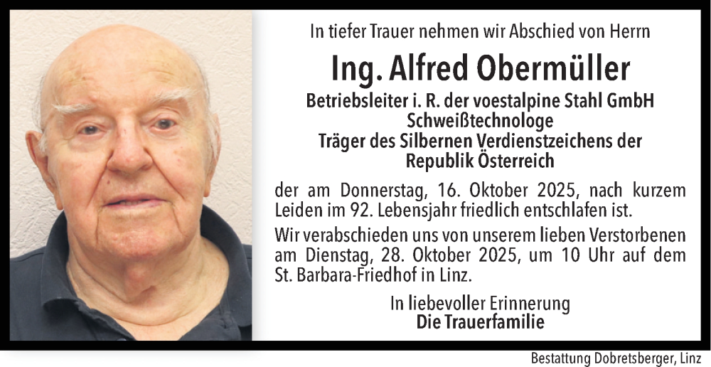 Hier finden Sie alle Traueranzeigen aus der Zeitung, die bisher für Alfred Obermüller erschienen sind. Weitere Traueranzeigen, die in der Zeitung erscheinen, werden hier ebenfalls aufgelistet
