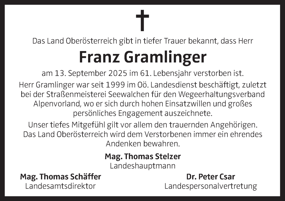 Hier finden Sie alle Traueranzeigen aus der Zeitung, die bisher für Franz Gramlinger erschienen sind. Weitere Traueranzeigen, die in der Zeitung erscheinen, werden hier ebenfalls aufgelistet