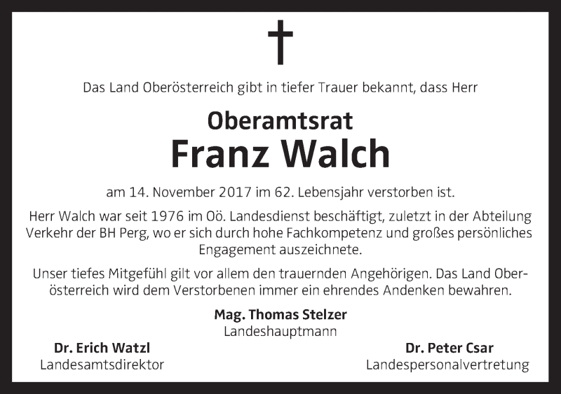 Hier finden Sie alle Traueranzeigen aus der Zeitung, die bisher für Franz Walch erschienen sind. Weitere Traueranzeigen, die in der Zeitung erscheinen, werden hier ebenfalls aufgelistet