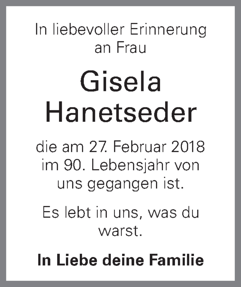 Hier finden Sie alle Traueranzeigen aus der Zeitung, die bisher für Gisela Hanetseder erschienen sind. Weitere Traueranzeigen, die in der Zeitung erscheinen, werden hier ebenfalls aufgelistet
