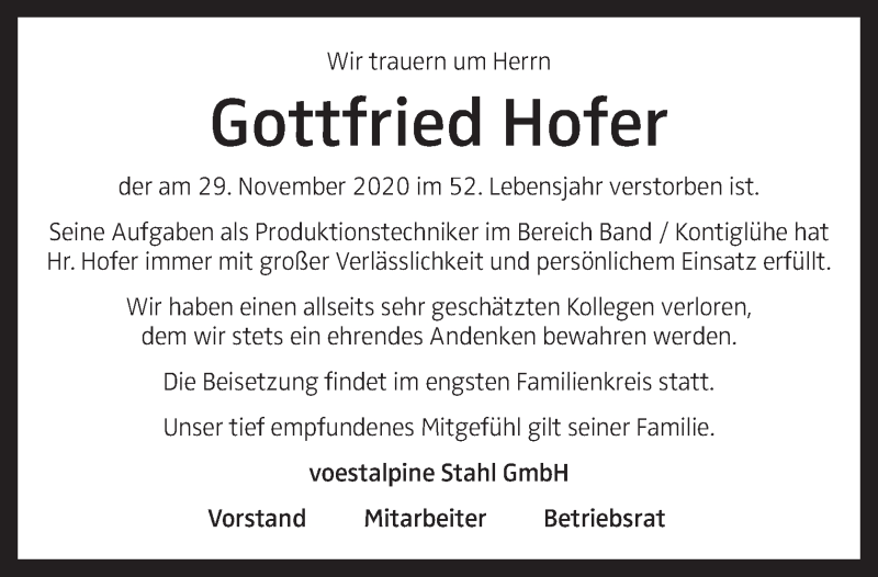Hier finden Sie alle Traueranzeigen aus der Zeitung, die bisher für Gottfried Hofer erschienen sind. Weitere Traueranzeigen, die in der Zeitung erscheinen, werden hier ebenfalls aufgelistet