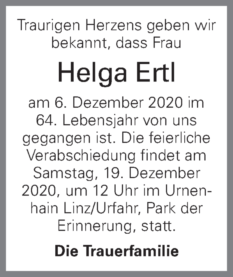 Hier finden Sie alle Traueranzeigen aus der Zeitung, die bisher für Helga Ertl erschienen sind. Weitere Traueranzeigen, die in der Zeitung erscheinen, werden hier ebenfalls aufgelistet