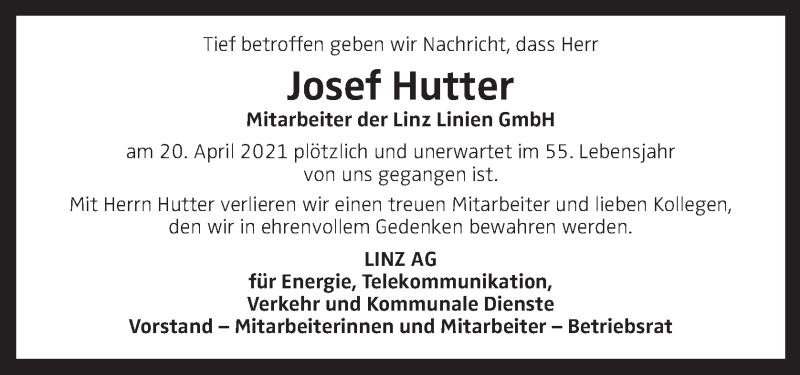 Hier finden Sie alle Traueranzeigen aus der Zeitung, die bisher für Josef Hutter erschienen sind. Weitere Traueranzeigen, die in der Zeitung erscheinen, werden hier ebenfalls aufgelistet