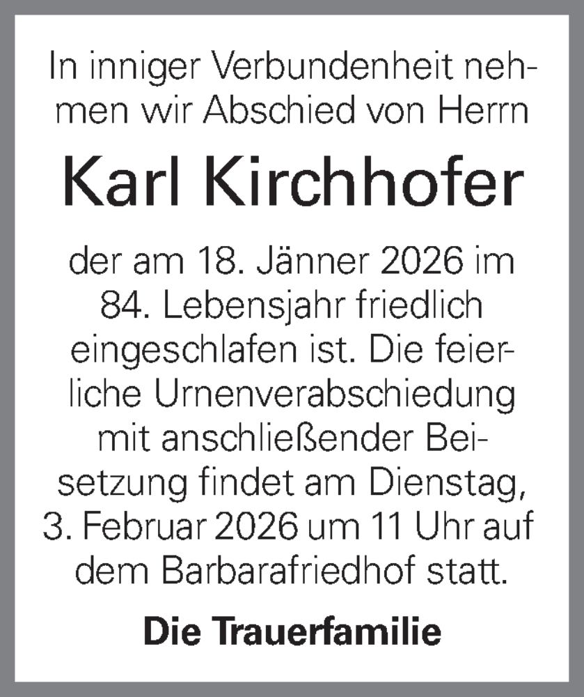 Hier finden Sie alle Traueranzeigen aus der Zeitung, die bisher für Karl Kirchhofer erschienen sind. Weitere Traueranzeigen, die in der Zeitung erscheinen, werden hier ebenfalls aufgelistet