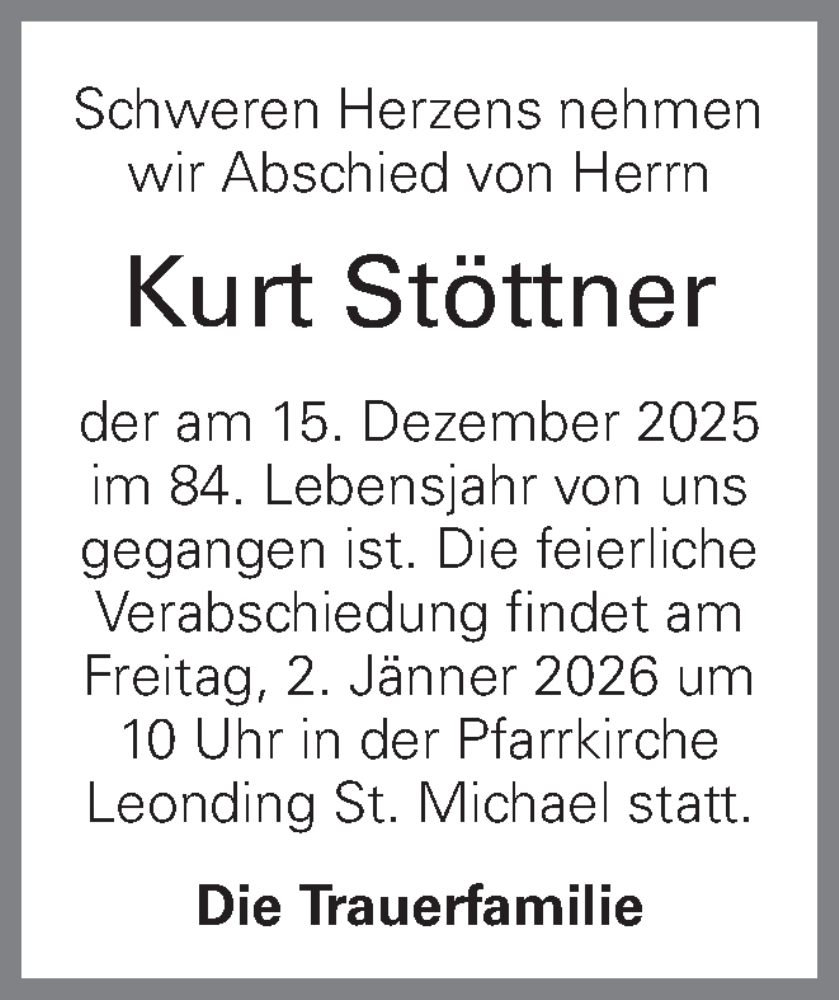 Hier finden Sie alle Traueranzeigen aus der Zeitung, die bisher für Kurt Stöttner erschienen sind. Weitere Traueranzeigen, die in der Zeitung erscheinen, werden hier ebenfalls aufgelistet