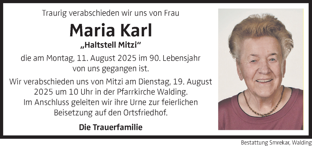 Hier finden Sie alle Traueranzeigen aus der Zeitung, die bisher für Maria Karl erschienen sind. Weitere Traueranzeigen, die in der Zeitung erscheinen, werden hier ebenfalls aufgelistet
