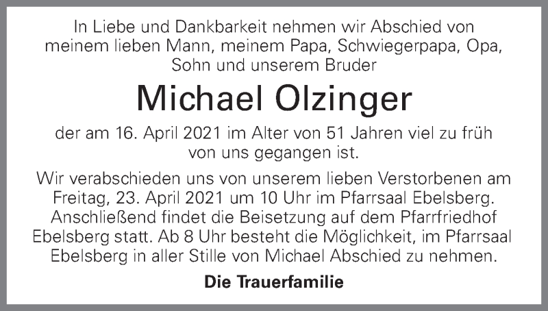Hier finden Sie alle Traueranzeigen aus der Zeitung, die bisher für Michael Olzinger erschienen sind. Weitere Traueranzeigen, die in der Zeitung erscheinen, werden hier ebenfalls aufgelistet