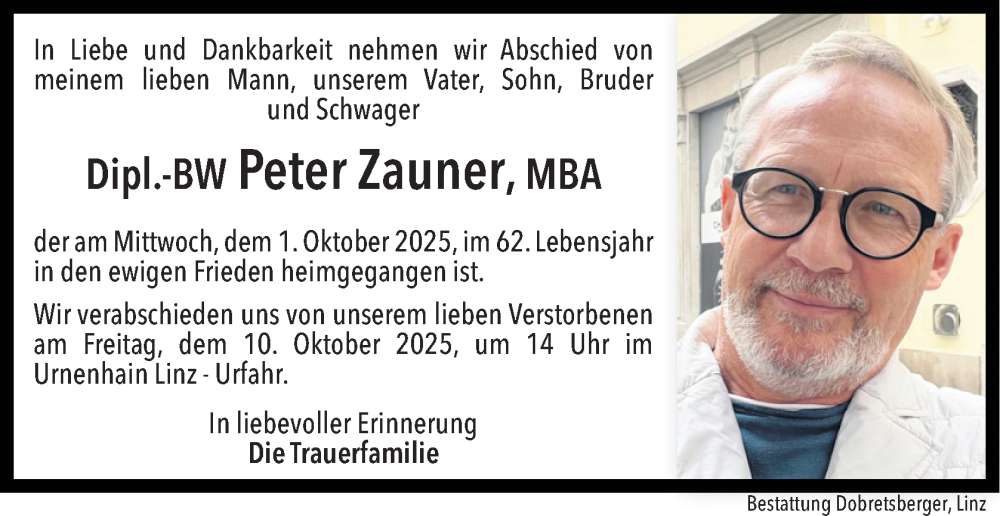Hier finden Sie alle Traueranzeigen aus der Zeitung, die bisher für Peter Zauner erschienen sind. Weitere Traueranzeigen, die in der Zeitung erscheinen, werden hier ebenfalls aufgelistet