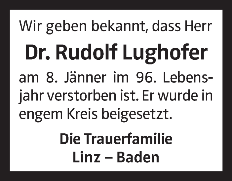 Hier finden Sie alle Traueranzeigen aus der Zeitung, die bisher für Rudolf Lughofer erschienen sind. Weitere Traueranzeigen, die in der Zeitung erscheinen, werden hier ebenfalls aufgelistet