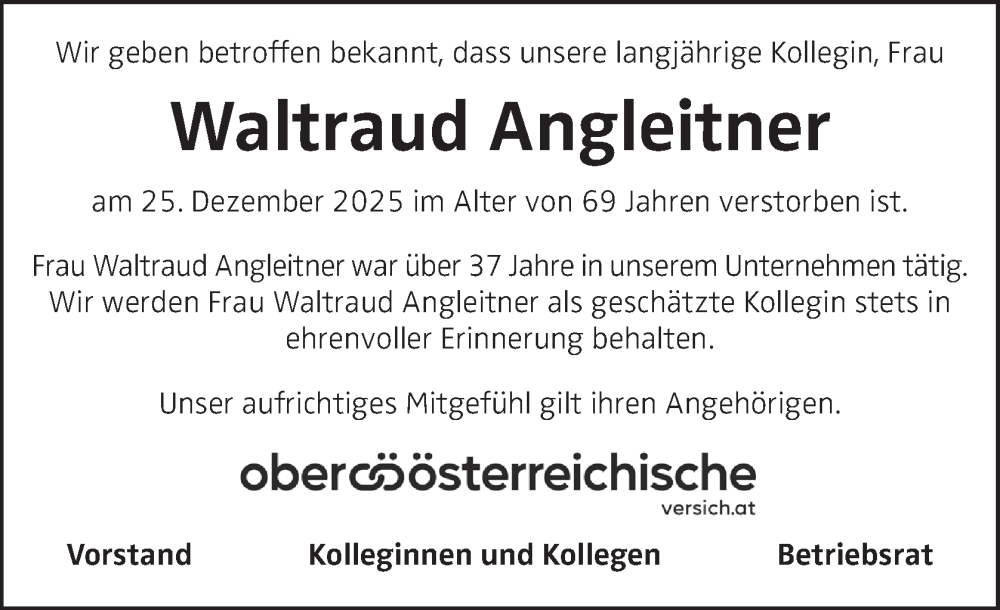 Hier finden Sie alle Traueranzeigen aus der Zeitung, die bisher für Waltraud Angleitner erschienen sind. Weitere Traueranzeigen, die in der Zeitung erscheinen, werden hier ebenfalls aufgelistet