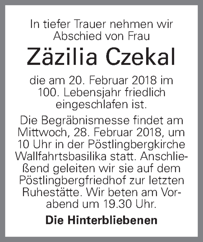 Hier finden Sie alle Traueranzeigen aus der Zeitung, die bisher für Zäzilia Czekal erschienen sind. Weitere Traueranzeigen, die in der Zeitung erscheinen, werden hier ebenfalls aufgelistet